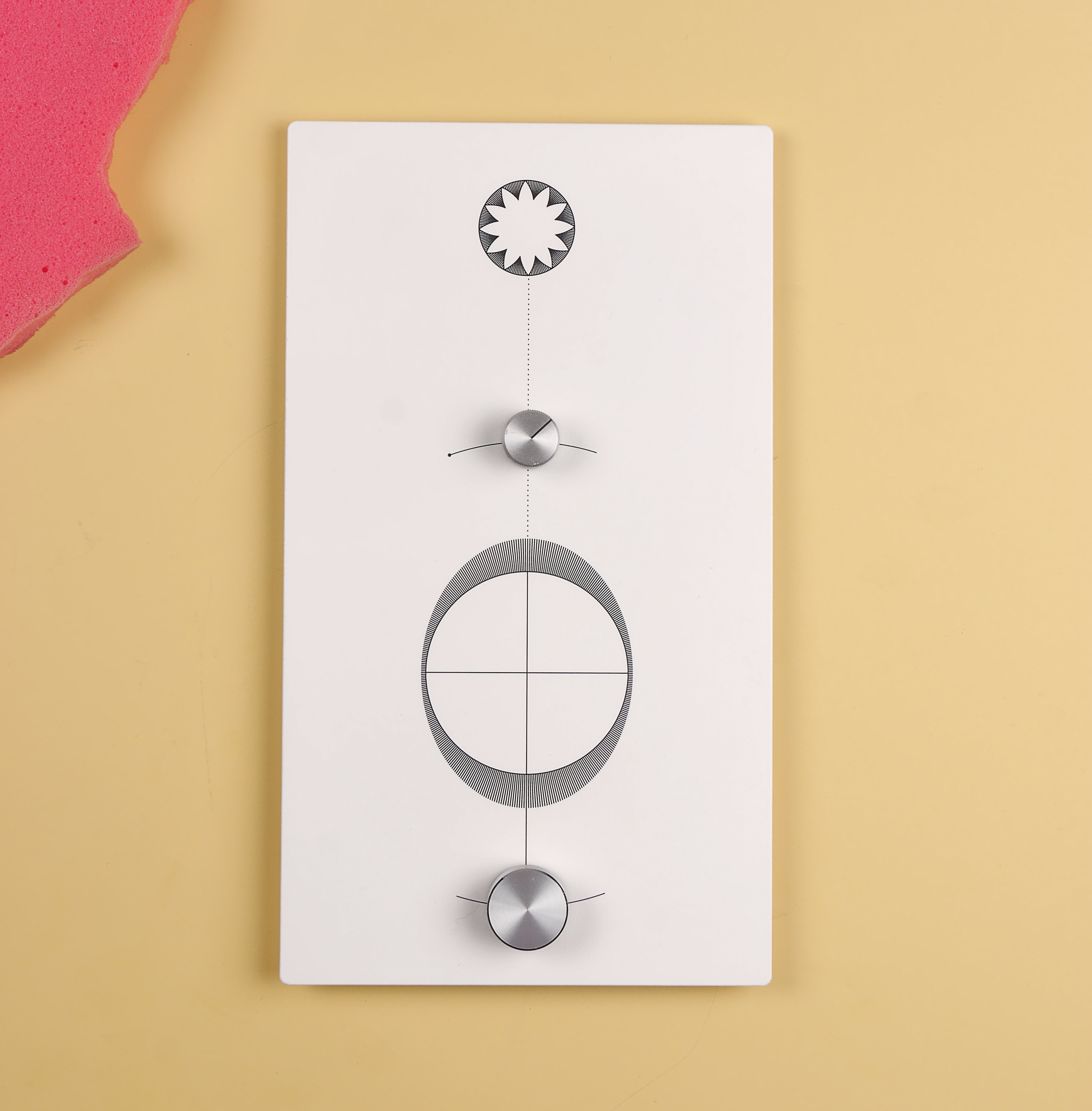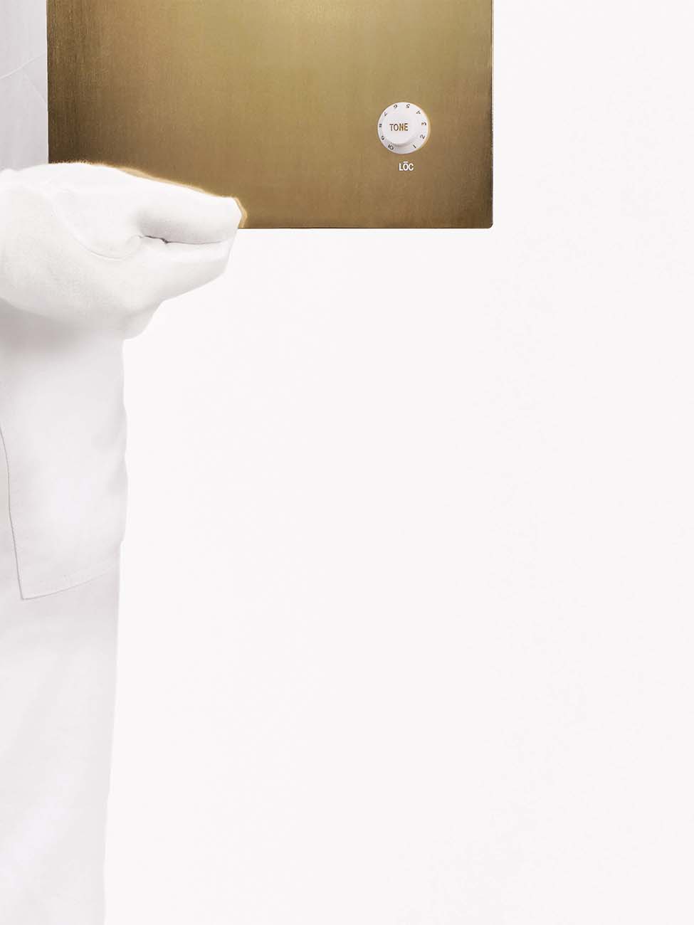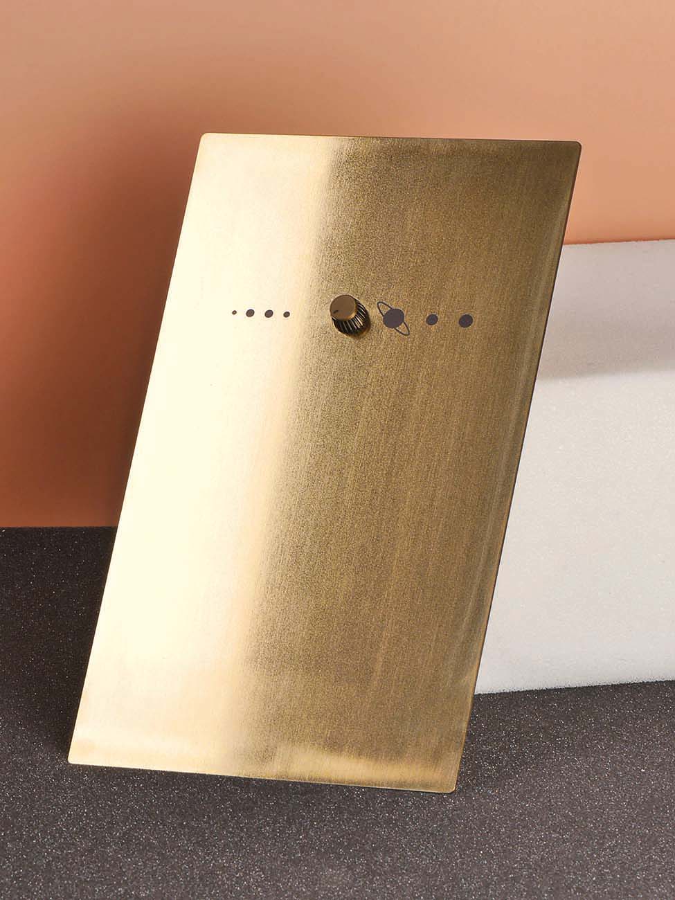 constellations: Messing und pulverbeschichtetes Stahlblech, Schalter, Drehregler, 2021constellations: brass and powder-coated sheet steel, switch, rotary control, 2021